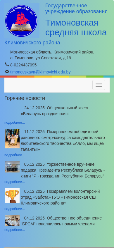 | timonovo_school@mail.ru, timonovskaya@klimovichi.edu.by | |