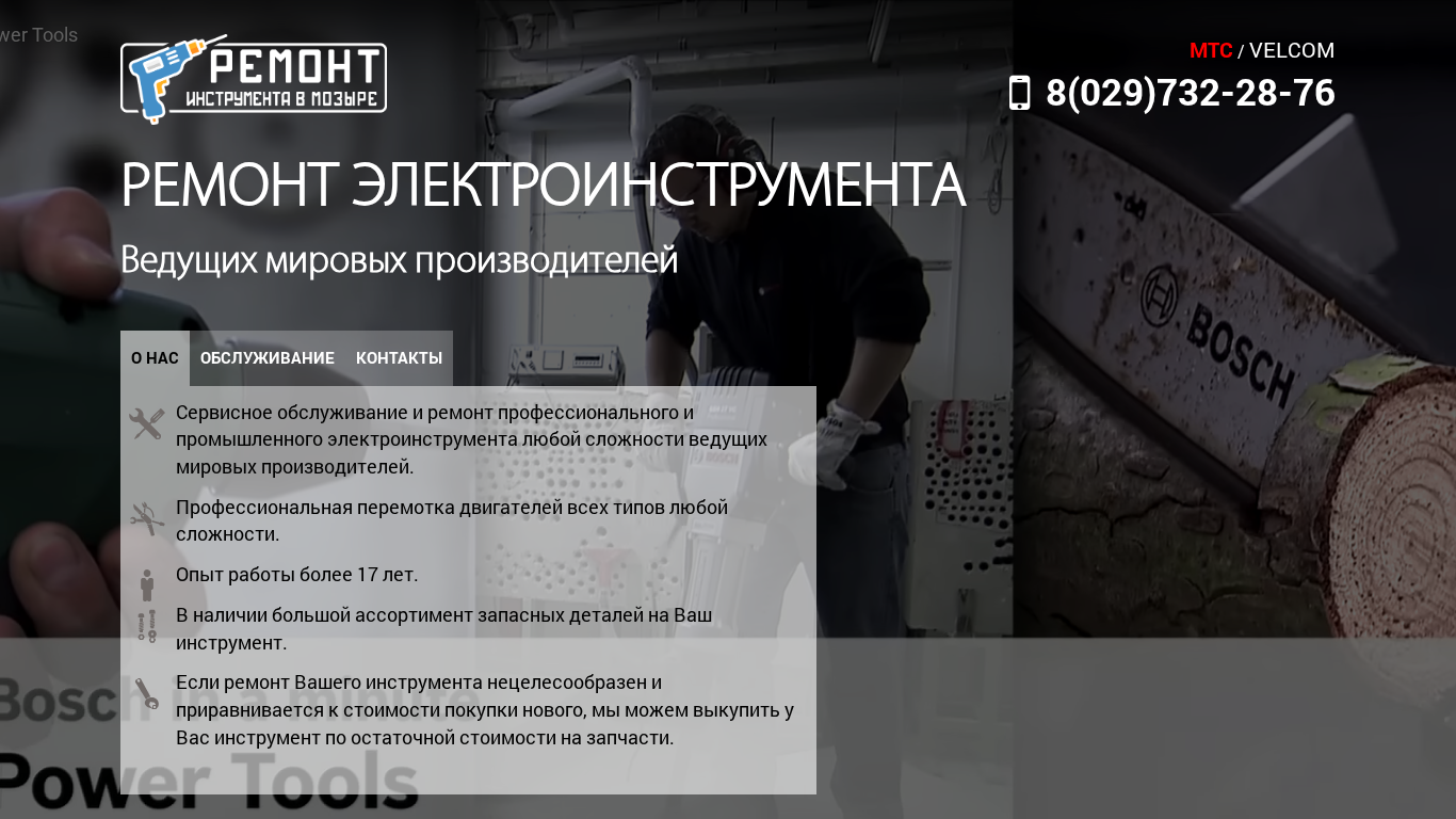 | AI-анализ | This online resource specializes in the repair and servicing of various types of electrical tools in the city of Mozir, Belarus. It offers professional repair services for industrial and commercial electrical tools from leading global manufacturers, as well as repair for handheld electrical tools. The website lists various repair services, including engine repairs, coil winding, and balancing of rotors for motor tools, among others. The service also sells replacement parts and accessories for a range of electrical tools, and offers to buy back used tools that are beyond repair and whose cost of repair is equivalent to the cost of a new tool. The business has been operational for over 17 years and has a large inventory of spare parts for various brands, including Bosch, Hitachi, Makita, DeWalt, Stanley, AEG, Skil, Hilti, Metabo, and others. The website provides contact information, including phone numbers |