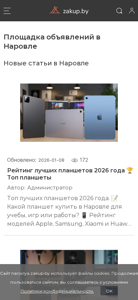 | AI-анализ | --- This website is an advertising platform in the city of Narovle, Belarus, where users can buy and sell goods and services. The site includes a catalog of companies, websites, and online stores, and offers 50 free ads. The content includes articles on various topics, such as the best tablets and headphones of 2026, as well as product reviews, prices, and specifications. The website is updated frequently and offers ratings of the top products in different categories. |