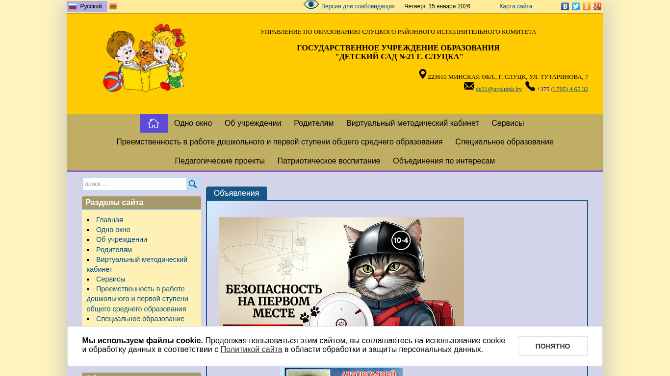 | Название / Заголовок | Детский сад №21 г.Слуцка |