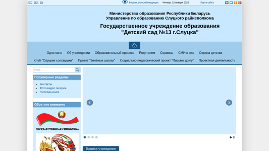 | Название / Заголовок | Детский сад №13 г.Слуцка |