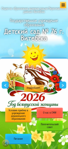 | AI-анализ | The web project "Детский сад № 76 г. Витебска" is a government educational institution website for a kindergarten in the city of Vitebsk, Belarus. The website provides information on the kindergarten's administration, schedule, admission procedures, social support services, and various initiatives. Keywords associated with the website include 'education', 'Vitebsk', 'kindergarten', 'schedule', 'help', and 'children'. The website contains sections on the educational process, anti-corruption activities, and contact information. It also features interactive maps of available spaces in kindergartens in the city and region, as well as a section for parents and guardians with information on support services and safety measures. The website is operated by the Education Department of the Pervoo-Vitebsk Administration and is licensed by the Belarusian government. |