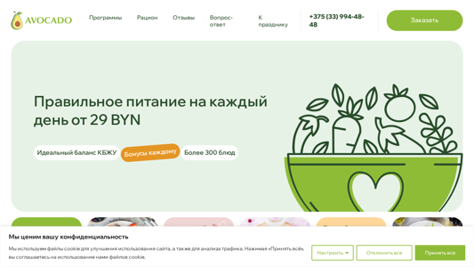 | AI-анализ | Этот онлайн-ресурс, названный "Авокадо - Вкусная еда на месяц с доставкой - Авокадо", является сервисом по доставке еды, базирующимся в Минске, Беларусь. Сайт сосредоточен на доставке здоровых блюд, делая его удобным, комфортным и вкусным для пользователей заботиться о своем здоровье. На сайте используются куки для улучшения сайта и анализа трафика. Название включает в себя ключевые слова такие как "Авокадо", "доставка", "еда" и "здоровые блюда", в описании упоминаются "правильное питание", "Минск" и "начните заботиться о своем здоровье сегодня". Список наиболее часто используемых слов включает в себя "byn", "бонус", "дни", "день", "калории", "смузи", "цена", "блюда", "это", "куки", "бонусы", "рацион", "куки", "баланс". |