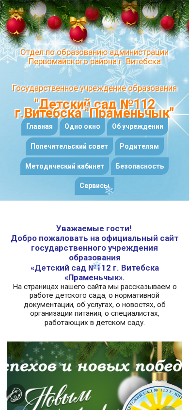 | AI-анализ | This website is for the Kindergarten No. 112 in the city of Vitebsk, Belarus, known as "Праменьчык" (Pramen'chyk). It is a state-run educational institution under the administration of the First May District of Vitebsk. The website provides information about the kindergarten, including its administrative procedures, hours of operation, and contact information. Keywords associated with the site include "Витебска" (Vitebsk), "112," "праменьчык," "образования" (education), "участие" (participation), "детский" (children's), "сад" (garden), "граждан" (citizens), "работы" (work), "учреждении" (organization), " |
