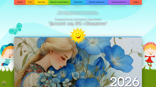| AI-анализ | The website is for a kindergarten in Ivacevichi, Belarus, named "Detsky Sad #5". The main content includes information about the kindergarten, its management, contacts, working hours, admission conditions, news, and a photo gallery. The website also offers educational services on a paid basis, information about various organizations providing legal, social, and psychological assistance to families with children, and a school bus schedule. The website is run by the Ministry of Education of the Republic of Belarus and the Ivacevichi district executive committee. It includes a section for parents with information about nutrition in the kindergarten, as well as a safety and security section. The website is accessible at sad5.rooivacevichi.gov.by. |