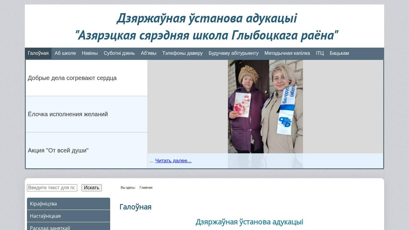 | Название / Заголовок | Галоўная - Азярэцкая дзіцячы сад - сярэдняя школа |