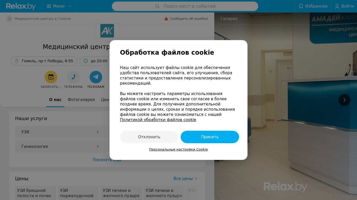 | SEO-описание | Медицинский центр Амадей Клиник в Гомеле – отзывы, телефоны, график работы и карта проезда на Relax.by |