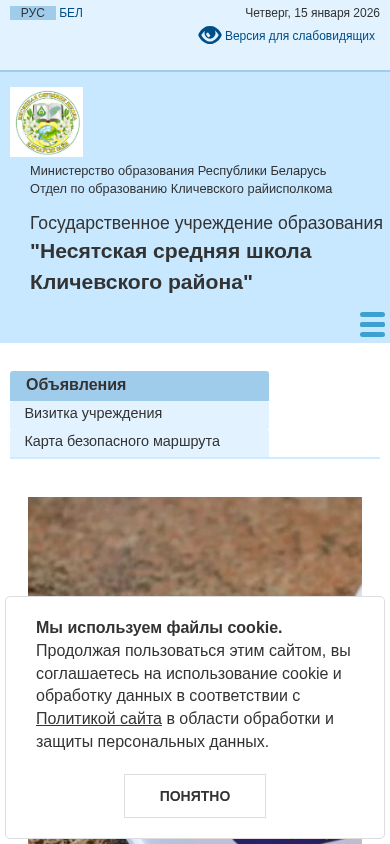 | Название / Заголовок | Несятская средняя школа Кличевского района |
