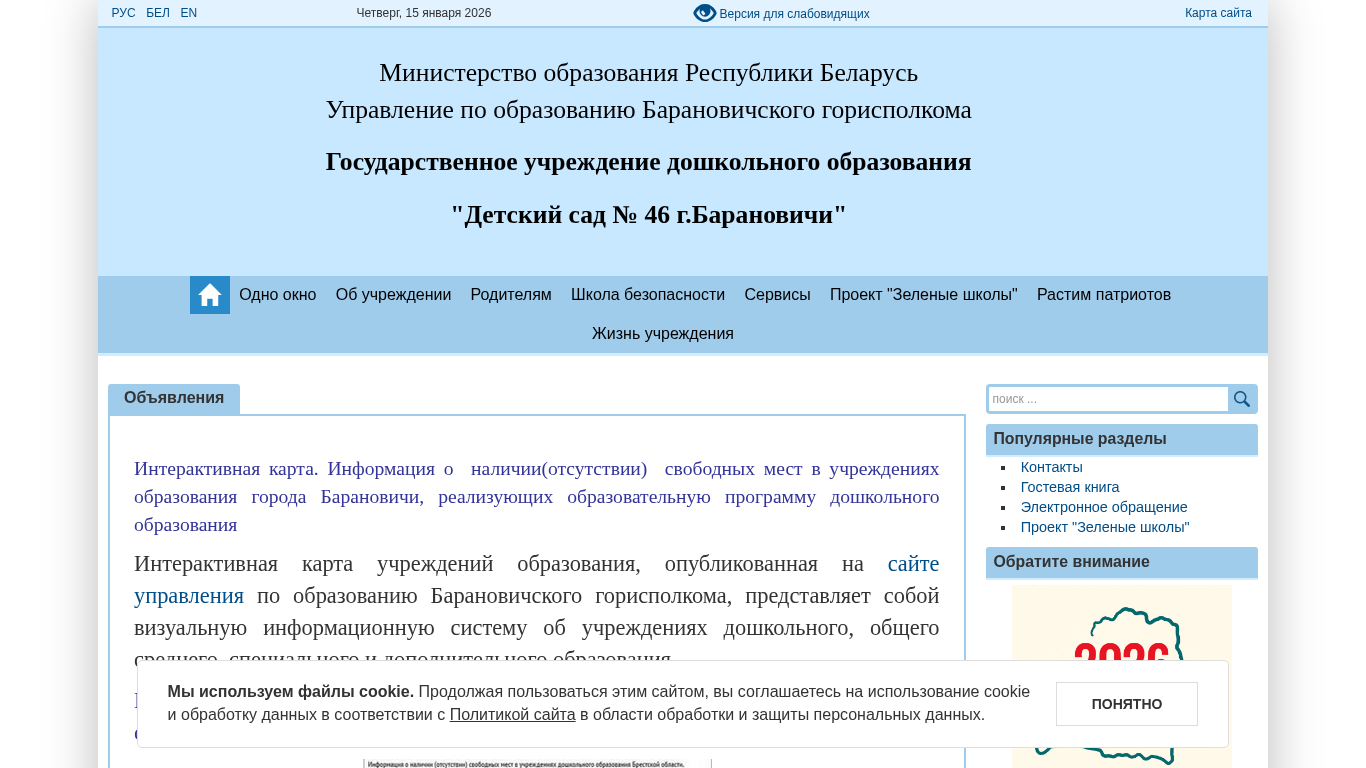 | Название / Заголовок | Детский сад №46 г.Барановичи |