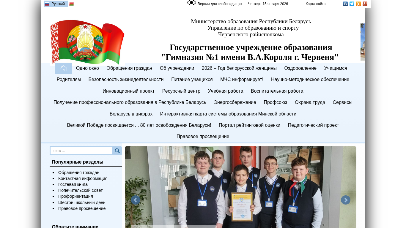 | Название / Заголовок | Гимназия №1 имени В.А.Короля г.Червеня |