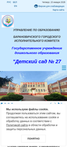 | AI-анализ | The website "Детский сад №27 г.Барановичи" (Children's Garden №27 in Baranovichi) is a children's educational institution based in Belarus, with a title and description in Belarusian language. The domain name consists of "ds27" and the top-level domain ".by", indicating its location in Belarus. The website uses cookies and has a standard font size and letter spacing. The keywords include 'education', 'read', 'further', '2026', 'city', 'preschool', 'children', 'news', 'Baranovichi', and 'institution'. The top words are 'education', 'read', 'further', 'children', and 'institution', with 'education' being the most frequently used term. The website likely provides information about the preschool, its |