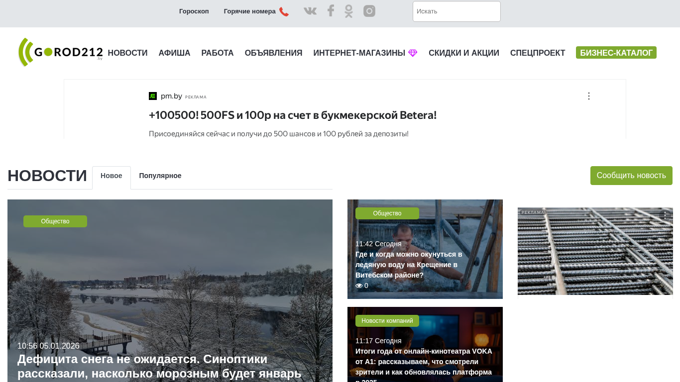 | SEO-описание | Городской портал Витебска. Новости, реклама, объявления, афиша мероприятий, работа, вакансии, резюме, скидки и акции, спецпроекты. Только самые актуальные новости. Прогноз погоды, расписание транспорта, гороскоп всех знаков зодиака на сегодня. экстренные службы и горячие номера, курсы валют. |