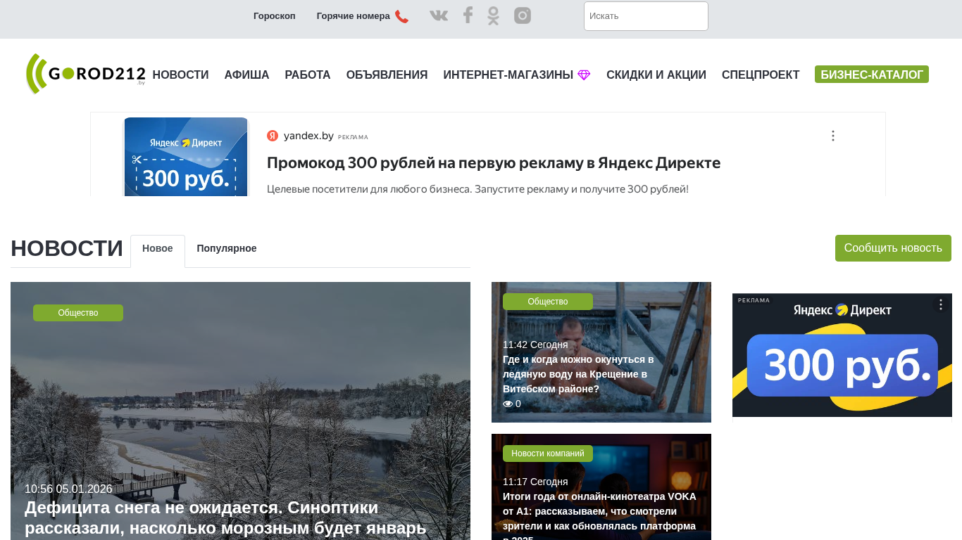 | SEO-описание | Городской портал Витебска. Новости, реклама, объявления, афиша мероприятий, работа, вакансии, резюме, скидки и акции, спецпроекты. Только самые актуальные новости. Прогноз погоды, расписание транспорта, гороскоп всех знаков зодиака на сегодня. экстренные службы и горячие номера, курсы валют. |