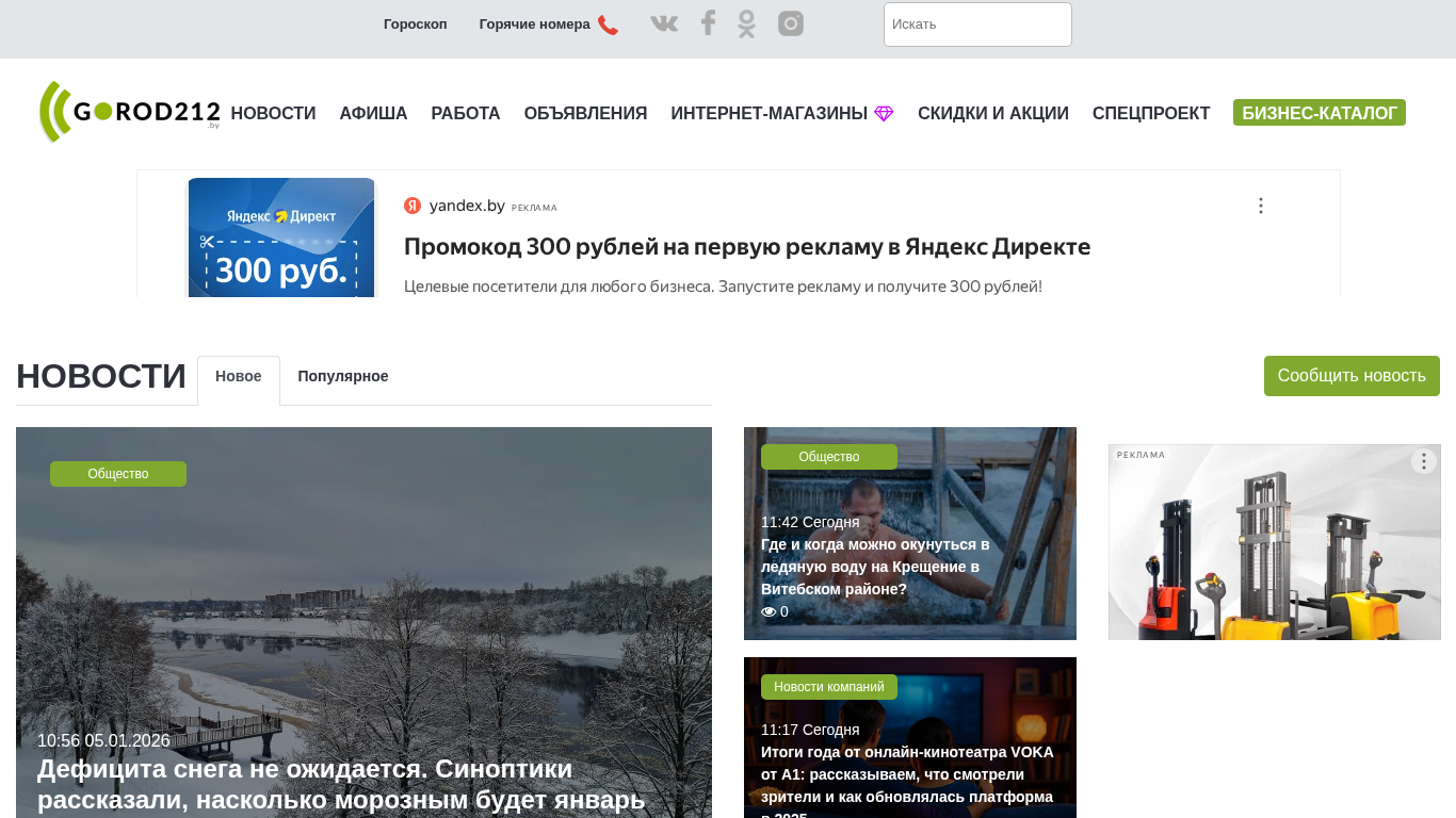 | SEO-описание | Городской портал Витебска. Новости, реклама, объявления, афиша мероприятий, работа, вакансии, резюме, скидки и акции, спецпроекты. Только самые актуальные новости. Прогноз погоды, расписание транспорта, гороскоп всех знаков зодиака на сегодня. экстренные службы и горячие номера, курсы валют. |