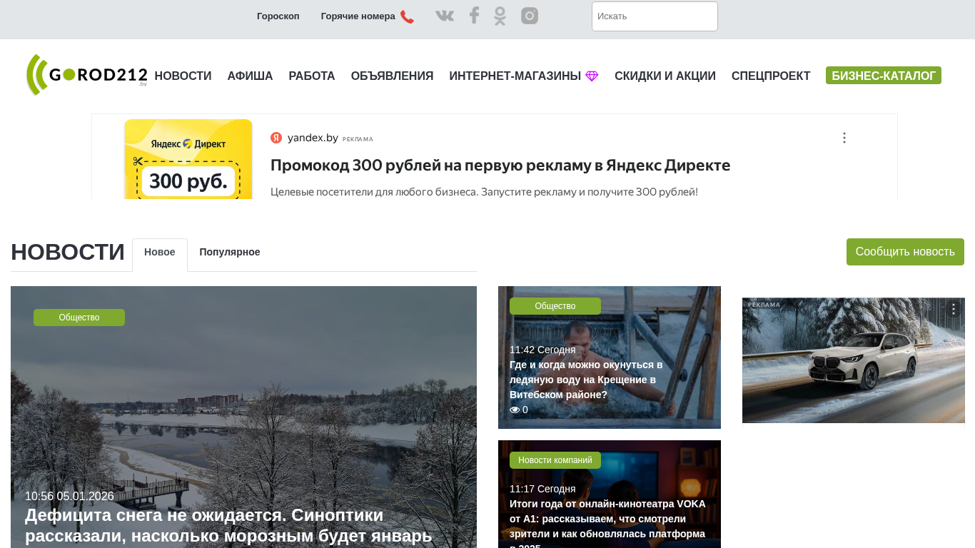 | SEO-описание | Городской портал Витебска. Новости, реклама, объявления, афиша мероприятий, работа, вакансии, резюме, скидки и акции, спецпроекты. Только самые актуальные новости. Прогноз погоды, расписание транспорта, гороскоп всех знаков зодиака на сегодня. экстренные службы и горячие номера, курсы валют. |