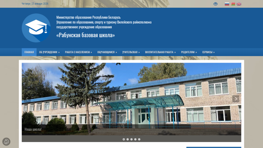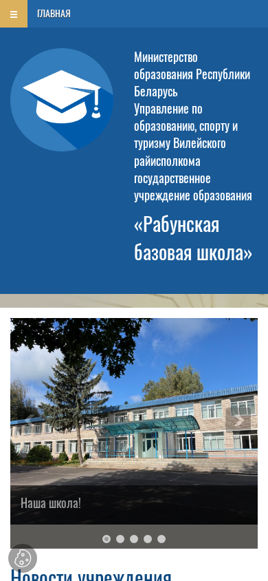 | AI-анализ | The web project "Rabun State Educational Institution 'Rabun Base School'" is a government educational organization in Belarus, under the Ministry of Education, Sports and Tourism of the Viayley Regional Executive Committee. The website provides information on the institution's news, notable alumni, history, traditions, achievements, scientific society of students, and policies regarding the handling of personal data and countering corruption. Interactive maps, community engagement, and contact information are also available. The organization offers information on enrolling children in preschool education, pro-orientation, safety guidelines, and excursion routes. There are sections for teachers, including a teacher's union life, and a methodological repository. The website covers special education, legal support for educational processes, humanitarian activities, and protective work. Volunteer movements, school for active citizenship, and the sixth school day are featured. The website includes |