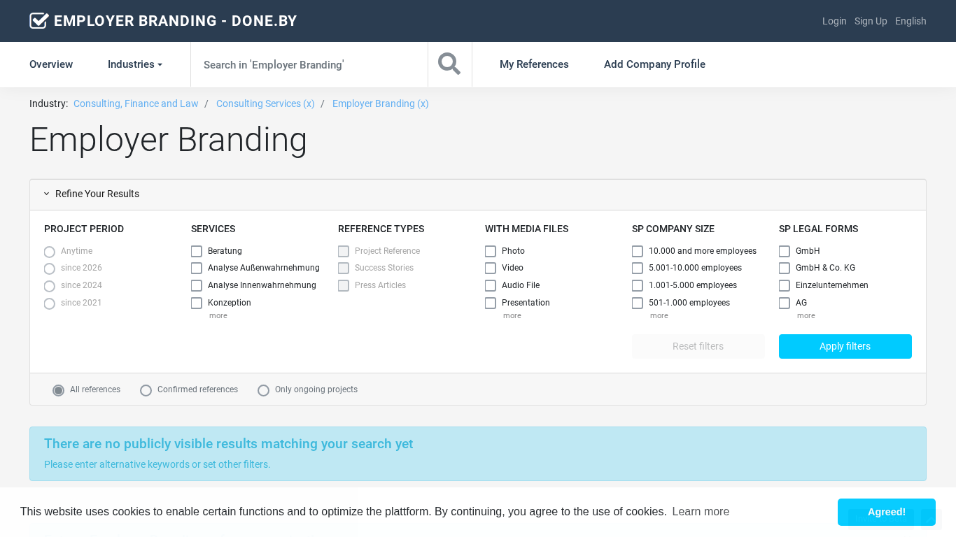 | SEO-описание | On done.by companies of the 'Employer Branding' industries present their portfolio based on informative project references. |