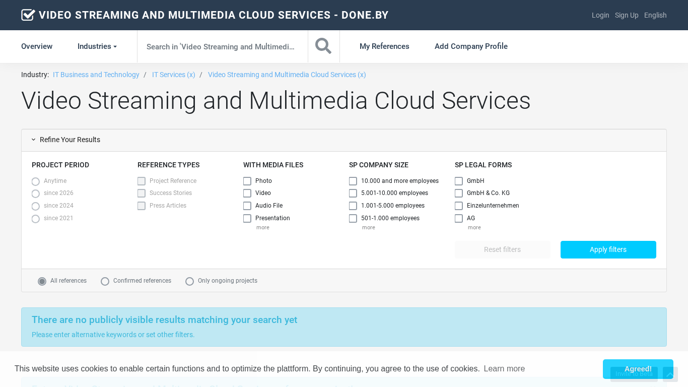 | Название / Заголовок | Video Streaming and Multimedia Cloud Services - Project References and Companies / done.by |