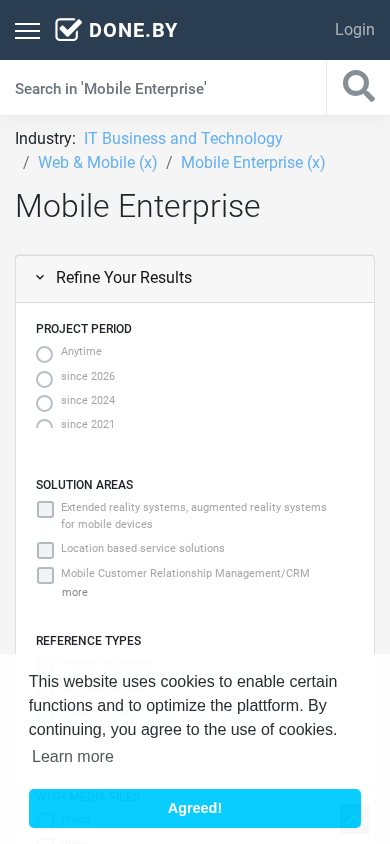 | SEO-описание | On done.by companies of the 'Mobile Enterprise' industries present their portfolio based on informative project references. |