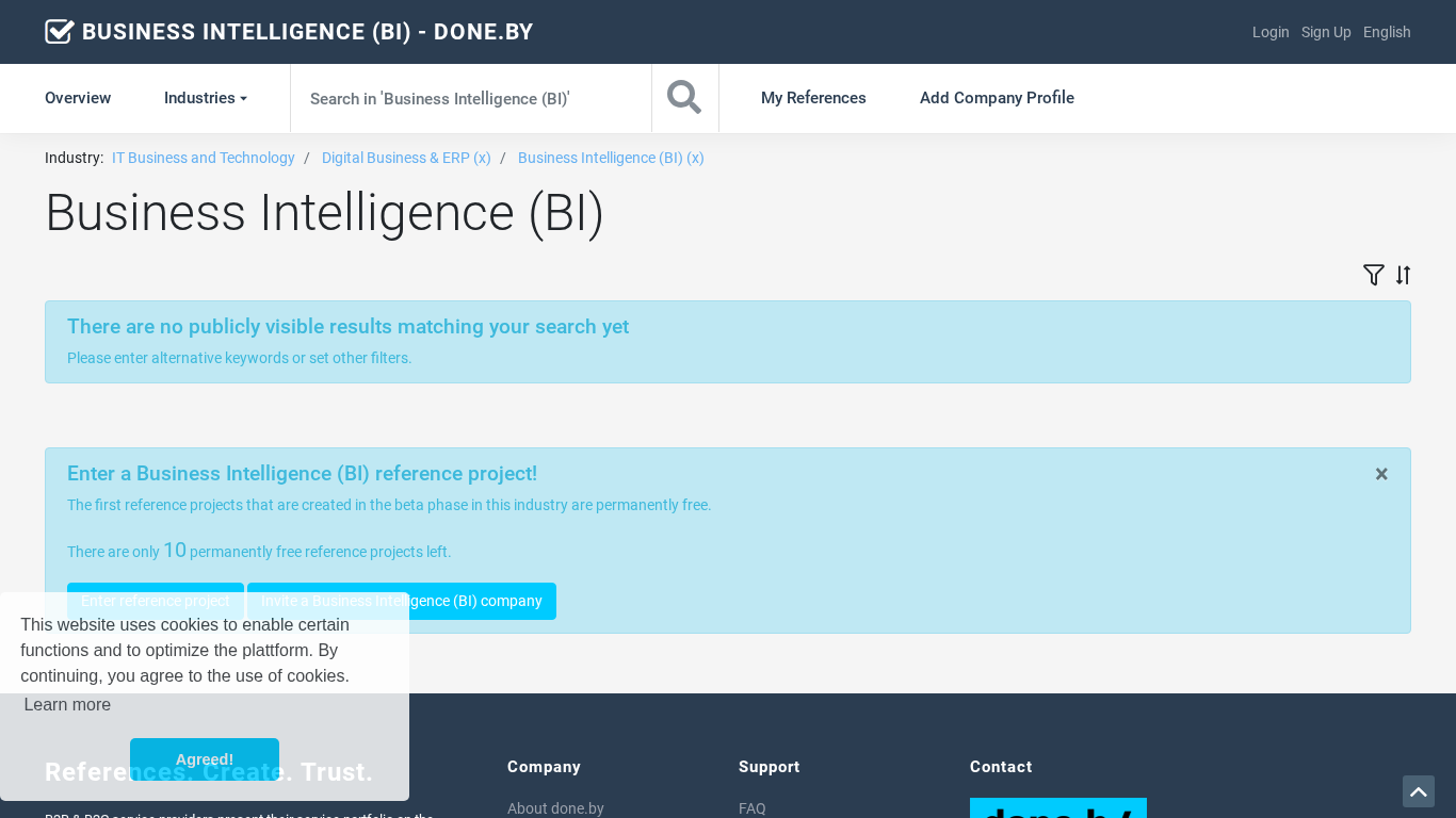 | SEO-описание | On done.by companies of the 'Business Intelligence (BI)' industries present their portfolio based on informative project references. |