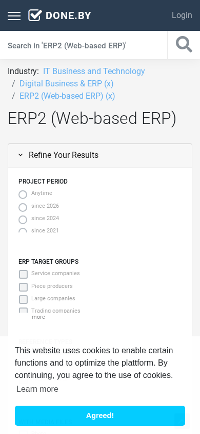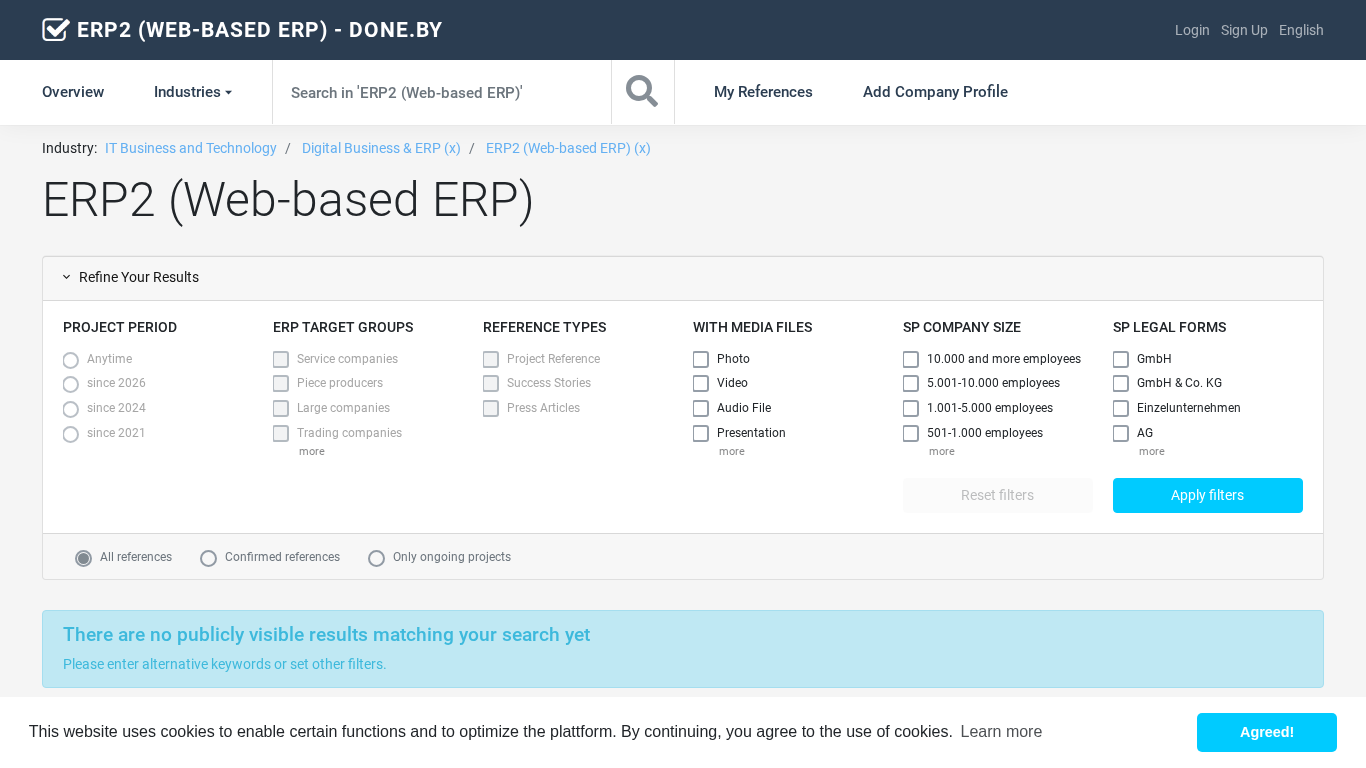| SEO-описание | On done.by companies of the 'ERP2 (Web-based ERP)' industries present their portfolio based on informative project references. |