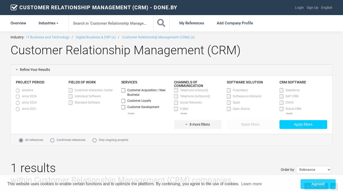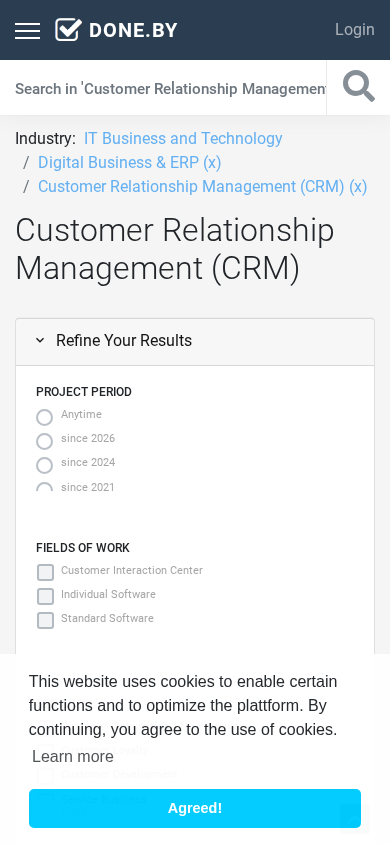 | SEO-описание | On done.by companies of the 'Customer Relationship Management (CRM)' industries present their portfolio based on informative project references. |