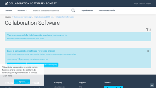 | AI-анализ | type: website content_language: English headquarters: Belarus The website, collaboration-software.done.by, is a platform for companies in the 'Collaboration Software' industry to present their portfolio based on informative project references. Users can search and filter projects by industry, project period, reference types, company size, legal forms and status. The website offers a dashboard and communications tools for managing and sharing projects. Companies can add their profile and projects to the platform, which are then visible to other users. The website uses cookies and is available in English and German languages. The domain is registered in Belarus. |