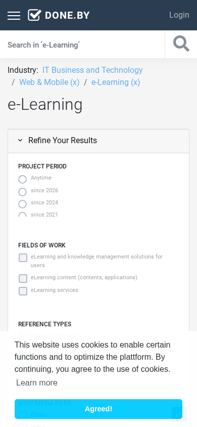 | SEO-описание | On done.by companies of the 'e-Learning' industries present their portfolio based on informative project references. |