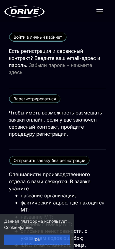 | AI-анализ | The portal is a website dedicated to providing a personal cabinet service for clients. The platform uses cookie-files and registration is required for accessing the service. Users are prompted to enter their email address and password for login. Forgotten passwords can be retrieved by clicking the appropriate link. Registration involves filling in a form with organizational details, contact information, and the serial number and description of the equipment in question. The aim of the service is to facilitate online submissions of requests for repairs, which can be done even without registration. However, for those with a service contract, registration is necessary. The specialists from the production department will then contact the client. The submission form requires the name of the organization, the factual address of the equipment location, the name of the equipment, the serial number, a description of the fault with error codes, the name of the person making the request, their position, and contact telephone number. |