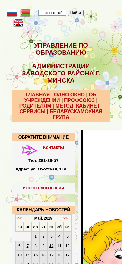 | Адрес | Метод. кабинет, Сервисы, Беларускамоўная група, Обратите внимание, Контакты, Тел. 291-28-57, Адрес: ул. Охотская, 119 |