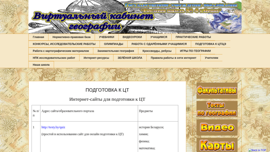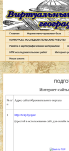 | AI-анализ | --- This website, titled "Кабинет географии" (Cabinet of Geography), is dedicated to providing educational resources for various subjects, with a primary focus on geography. The description does not provide any specific information about the nature or purpose of the website beyond its title. The most frequently occurring keywords include "география" (geography), "класс" (class), and "учебники" (textbooks). The website appears to offer a variety of educational materials, including videos, practical exercises, and contests. It also mentions the availability of research projects and Olympiad preparation materials. The website seems to be related to Belarusian education, as evidenced by the frequent occurrence of the word "Беларуси" (Belarus) and related terms. Additionally, there are references to various scientific subjects, such as chemistry, physics, and biology, suggesting |