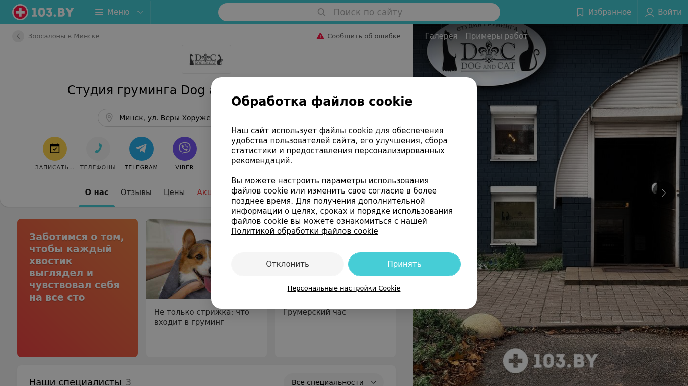 | SEO-описание | Студия груминга Dog and Cat (Дог энд Кэт) Минск ул. Веры Хоружей 24к1 – телефоны, время работы, отзывы и схема проезда в каталоге медицинского портала 103.by. |