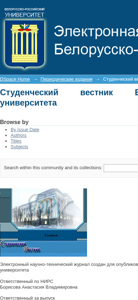 | AI-анализ | This online resource is the electronic student newspaper of Belarusian-Russian University. It provides access to the best scientific results of the university's students. The responsible person for scientific research is Anastasia Borisova, and the person in charge of publication is Konstantin Zakharchenkov, a senior lecturer at the "Automated Control Systems" department. The newspaper is published using DSpace and contains collections from the years 2005 to 2017. The latest issues include articles on the need for automation in the economic justification of equipment projects, the analysis and improvement of the competitiveness of MOJELIT OAO's products, and the automation of decision-making processes in innovative project design. Keywords associated with this website include "Belarusian-Russian University", "student newspaper", "dspace", and "publications". |