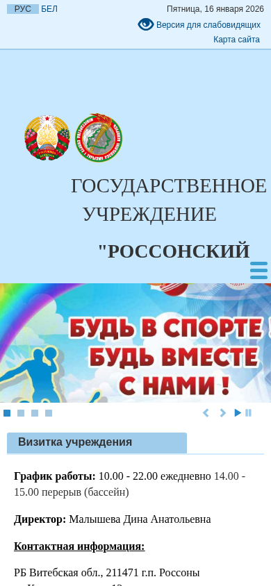 | Название / Заголовок | Россонский районный физкультурно-спортивный клуб "Старт" |
