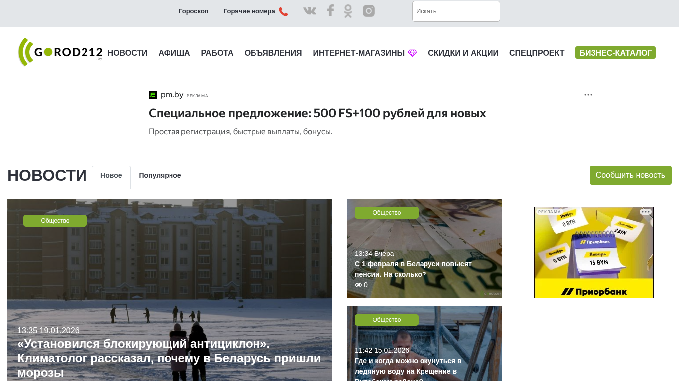 | SEO-описание | Городской портал Витебска. Новости, реклама, объявления, афиша мероприятий, работа, вакансии, резюме, скидки и акции, спецпроекты. Только самые актуальные новости. Прогноз погоды, расписание транспорта, гороскоп всех знаков зодиака на сегодня. экстренные службы и горячие номера, курсы валют. |