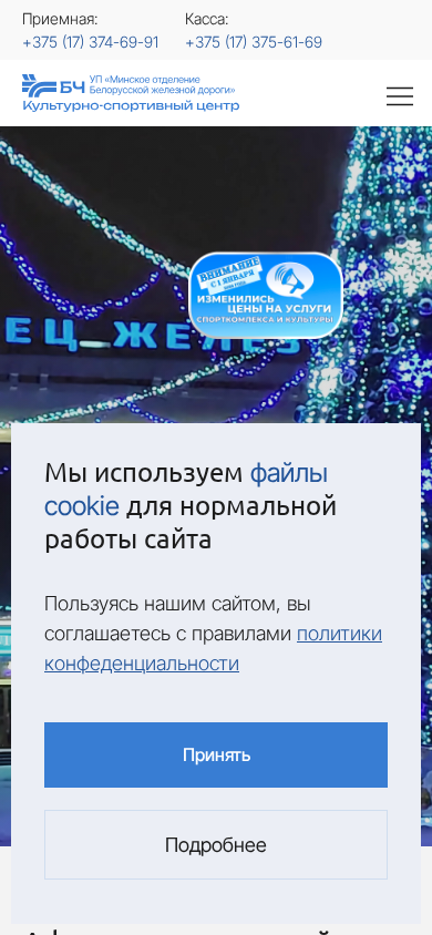 | AI-анализ | Проект веб-сайта "Минское отделение Белорусской железной дороги" Культурно-спортивный центр (DKSG.BY) посвящен культурным и спортивным мероприятиям Минского филиала Белорусских железных дорог. Сайт предлагает информацию о различных событиях, услугах и объектах, доступных в центре, включая аренду залов для различных целей, спортивные комплексы и культурные мероприятия. Посетители могут найти подробную информацию о истории дворца, экскурсиях, вакансиях и антикоррупционной работе. На сайте также представлены разделы как для детей, так и для взрослых, а также информация по ценам на культурные услуги и спортивные объекты. Предоставляются контакты для приема и кассы, а также информация о предстоящих мероприятиях и новостях. Сайт доступен на русском, белорусском и английском языках. |