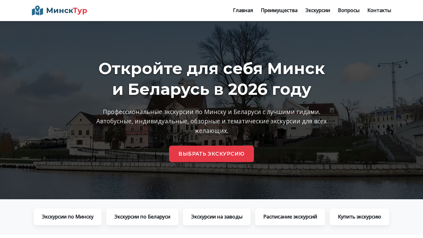 SEO-описаниеЛучшие экскурсии по Минску и Беларуси. Автобусные, обзорные, индивидуальные экскурсии с гидом. Расписание и цены на 2026 год.
