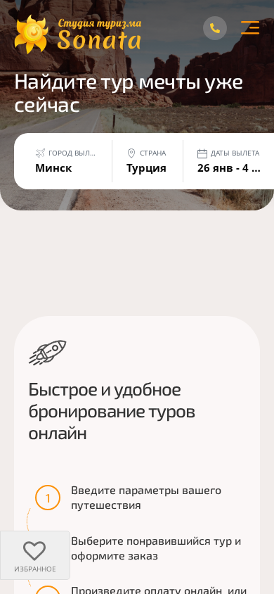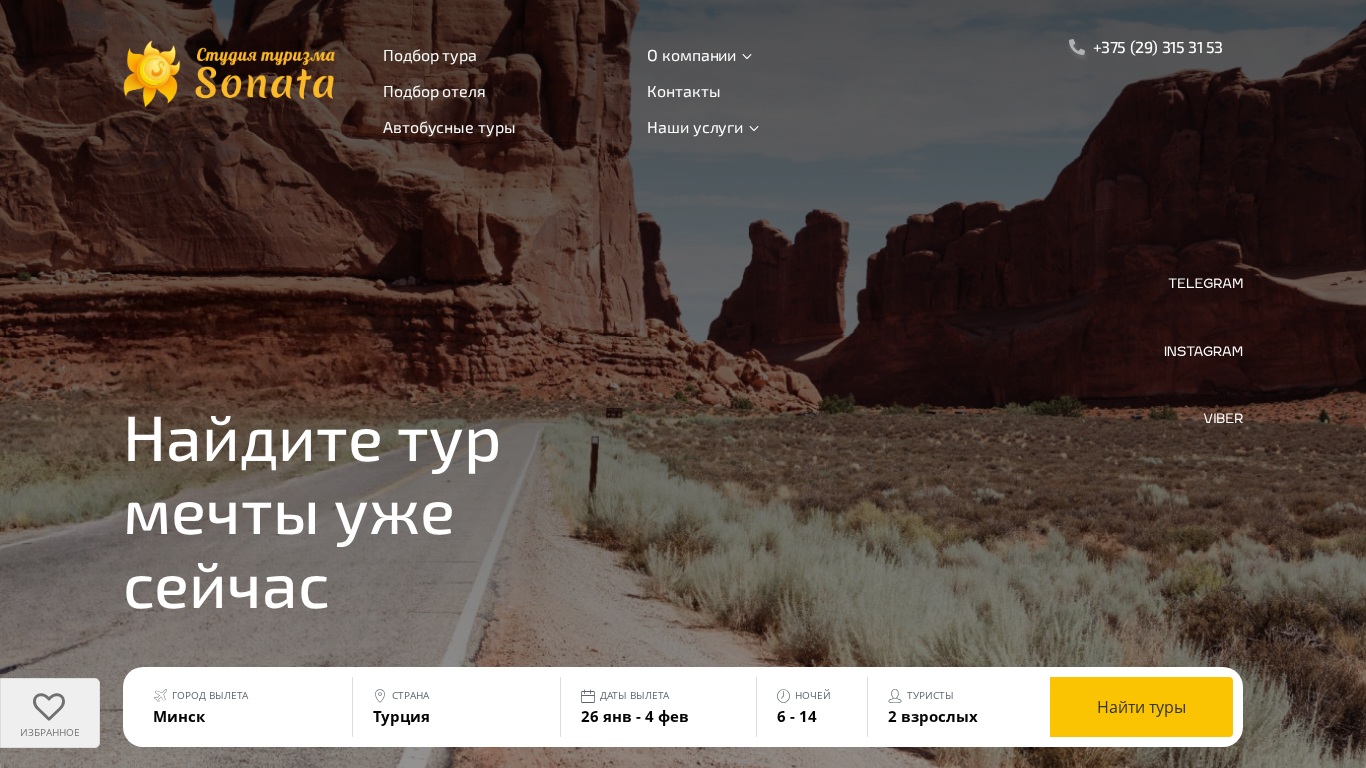| AI-анализ | The website is a tourism agency named "Sonata Studio" offering a range of tour services. The main focus is on organizing group and individual tours to various exotic destinations such as Turkey, Egypt, UAE, Thailand, Maldives, and Sri Lanka. They provide both air and bus tours, as well as customized programs, and yoga tours. The agency aims to understand clients' needs to provide tailored travel experiences. Their services include booking and reservation of hotels. They have been in the tourism industry for nine years with two specialists and over 3000 satisfied clients. Clients can browse real reviews from previous clients. The contact details provided are a phone number and address in Minsk, Belarus. |