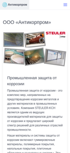 This online resource is the official website of OOO "Antikorpprom," an experienced company with a high level of logistics and developed infrastructure, offering very pleasing prices. The website includes sections for "Protection from Corrosion," "Conveyor Systems," "Tire Mounting," "Repair," and "Contacts." OOO "Antikorpprom" offers industrial corrosion protection, with a focus on preventing corrosion of metals and other materials in industrial settings. Steuler-KCH is a leading producer of materials for corrosion protection and provides a wide range of solutions for various industries. Their materials and corrosion protection systems include rubber coatings, polymer coverings, floor coverings, tiling, and fireproof systems. These materials and systems are designed to protect equipment and structures from chemical, mechanical, and thermal stress, as well as ensuring durability and reliability