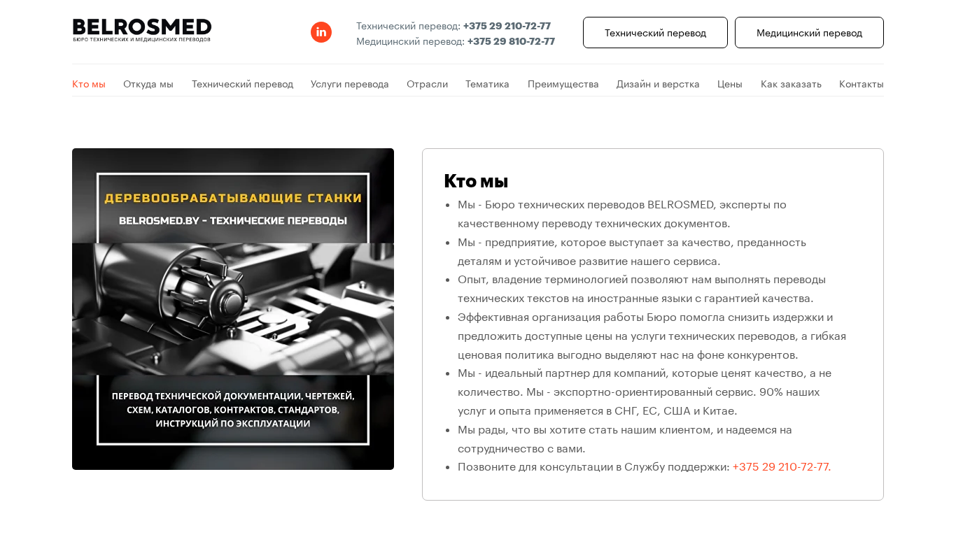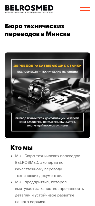 | SEO-описание | Бюро технических переводов в Минске. Цена - от 7 рублей за учетную страницу. Переводим качественно, быстро и недорого любые технические документы, каталоги, документацию, чертежи, таблицы. Верстка и редактирование текстов. Консультация: +375 29 2107277. |