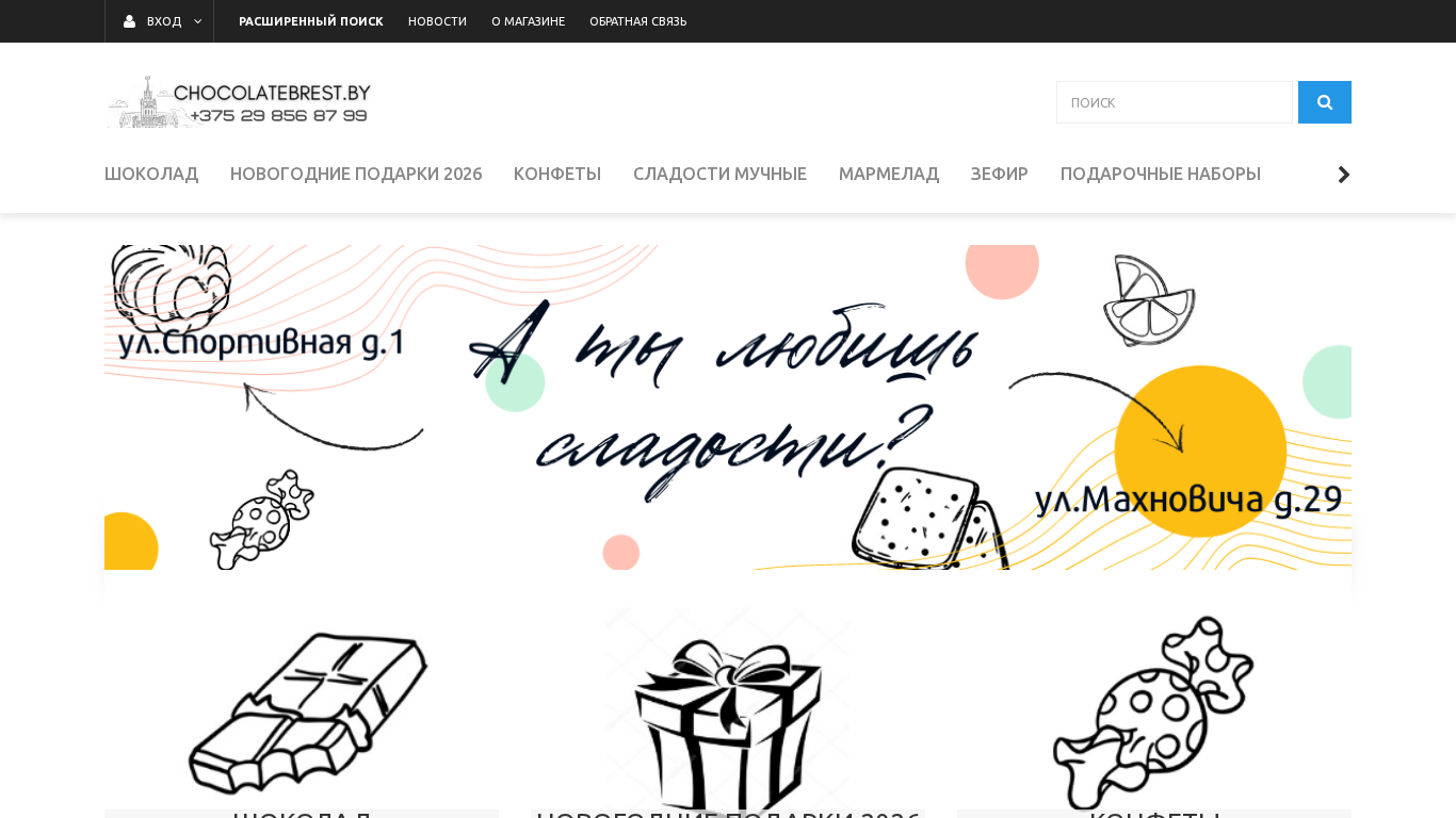 | Название / Заголовок | Интернет-магазин конфет, шоколада и сладостей Брест ул. Спортивная 1 Chocolatebrest.by - Интернет магазин |