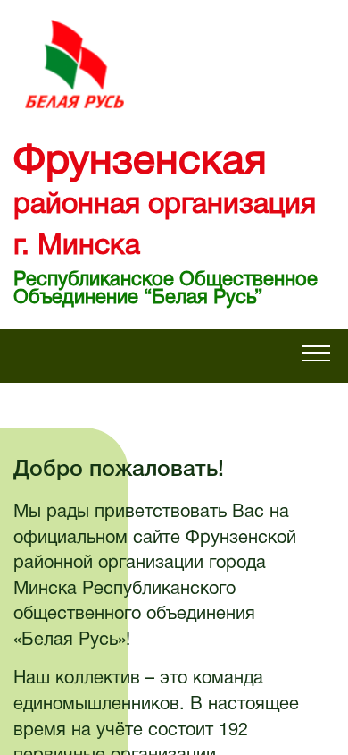| Название / Заголовок | Главная - Фрунзенская районная организация г.Минска РОО «Белая Русь» |