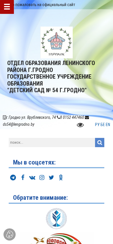 | Название / Заголовок | Детский сад № 54 г.Гродно |