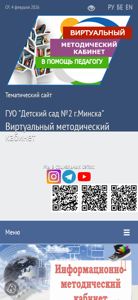 | AI-анализ | This website is a thematic site for the "Detsky sad №2" kindergarten in Minsk, Belarus. It functions as a virtual methodological cabinet for the educational institution, providing normative legal support and scientific-methodological resources for preschool education. The website offers various sections including an online reference guide, professional development plans, self-education opportunities, and resources for assessing and improving pedagogical skills. It also features sections for seminars, consultations, and diagnostic evaluations, as well as information on educational conferences and events. The site is organized to facilitate the professional growth and creative potential of educational staff, aiming to enhance the overall development of kindergarten students. |