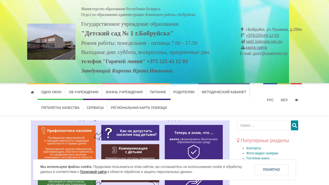 | Адрес | праздничные дни., телефон "Горячей линии" +375 225 43 12 93, Заведующий Киреева Ирина Ивановна, г. Бобруйск, ул. Пушкина, д.299а |