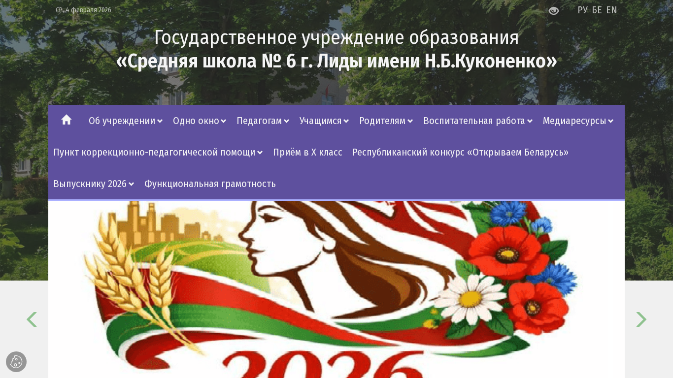 | Название / Заголовок | Средняя школа №6 г. Лиды им. Н.Б.Куконенко |