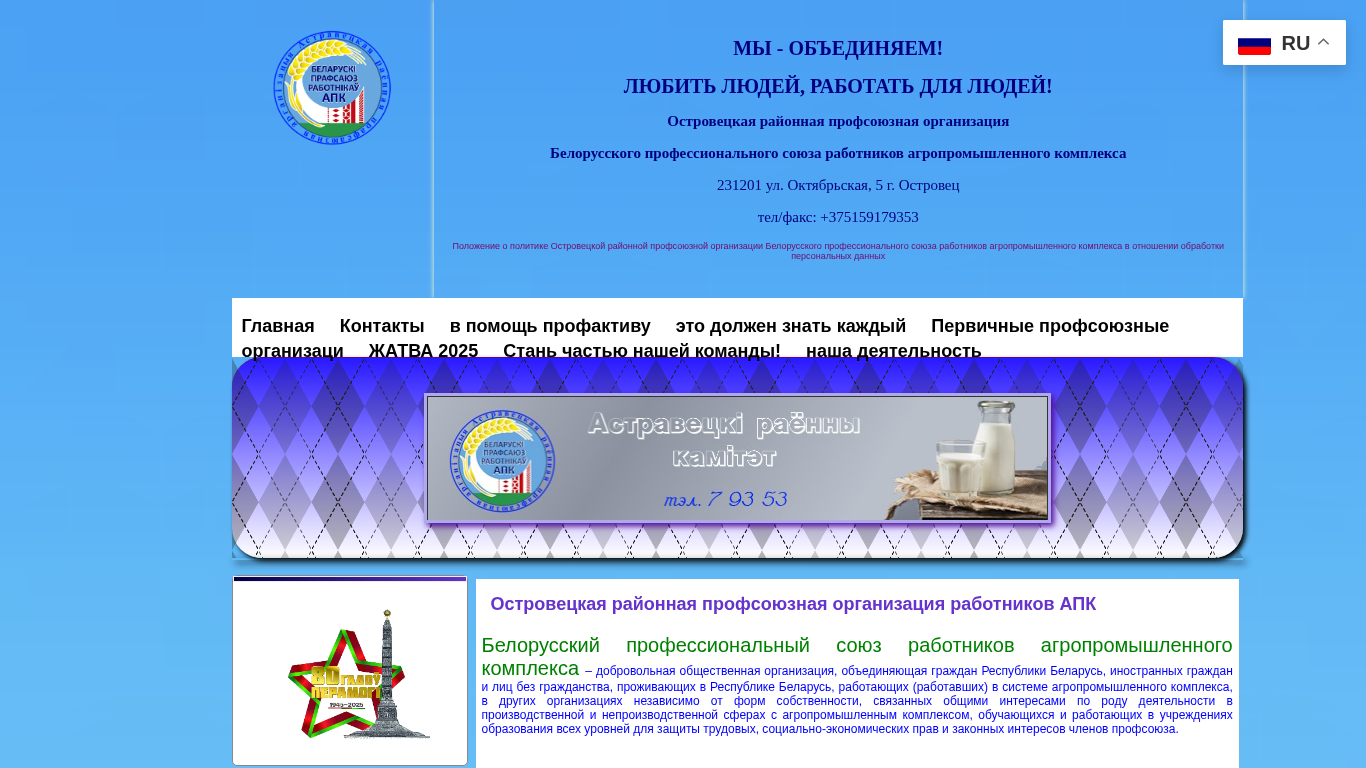 | SEO-описание | Островецкий районный профессиональный союз работников агропромышленного комплекса |
