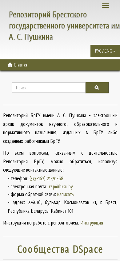 | Адрес | электронная почта:, rep@brsu.by, - форма обратной связи:, написать, - адрес: 224016, бульвар Космонавтов 21 |