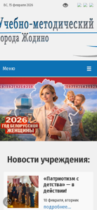 | AI-анализ | Сайт является образовательным ресурсным центром для города Жодино, Беларусь. Он предлагает различные учебные материалы и методики. Название звучит как "Учебно-методический кабинет города Жодино" (Город Жодино Образовательный Ресурсный Кабинет). Описание включает ключевые слова такие, как "методический", "кабинет", "города", "обращение", "подробнее", и "сайта". На первом месте находятся слова "жодино", "карта", "контакты", "2026", "интерактивная", и "педагогов". |