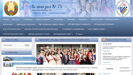 | AI-анализ | Портал Гимназия № 75 г. Минск имени Масленникова П.В. представляет собой образовательное учреждение, расположенное в Минске, Беларусь, именуемое по имени П.В. Масленникова. Сайт предоставляет информацию о политиках школы, программах и мероприятиях. Посетители могут найти детали о процессе приема, академических предложениях, дополнительных образовательных мероприятиях и различных инициативах. На сайте также представлены разделы для учащихся, родителей и сотрудников. Используются на сайте куки, и пользователи уведомляются и спрашиваются о согласии при входе. Сайт управляется Администрацией образования Октябрьского района Минска. |